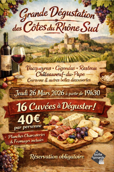 La Boîte à Pinards vous invite à une soirée exceptionnelle dédiée aux grandes appellations du Rhône Sud !